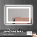 【Anti-Fogged & Waterproof Design】Our wall mounted mirror has anti-fog function, you only need to press the button and wait for a few minutes to get a clear reflection image. A simple touch-sensitive on/off button makes turning your LED lights on and off as easy as the swipe of your finger.