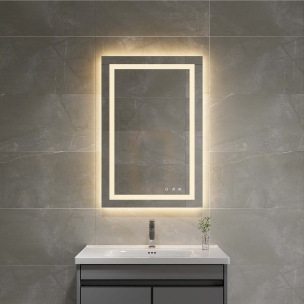 | Description | 1)Three colors LED lights, 3500K-6500K, 120led/m 2)Controlled by 3 touch sensor buttons,dimmable 3)Power driver is AC110V/220V 4)With defogger pad 5)New Aluminum frame with back cover+Power box | ||