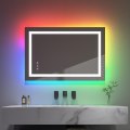 【Stepless Dimming Mirror】The RGB lighted bathroom mirror both front light and backlight could be operated separately and dimmable. RGB button to control backlight, middle button to control front light. Long press the button to adjust the brightness from 10% to 100%. Just a simple tap of the touch switch to adjust the light color and switch among different light modes. Memory function remembers your preferred settings.
