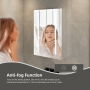 Illuminate your bathroom with integrated LED lights elegantly adorning all four sides of the mirror door. With a two-color light strip featuring 120pcs/meter and 12W output, you can adjust from warm 3000K to cool 6500K, ensuring optimal lighting for every occasion. The mirror's high CRI (>80) guarantees accurate colors, making daily grooming a pure delight.