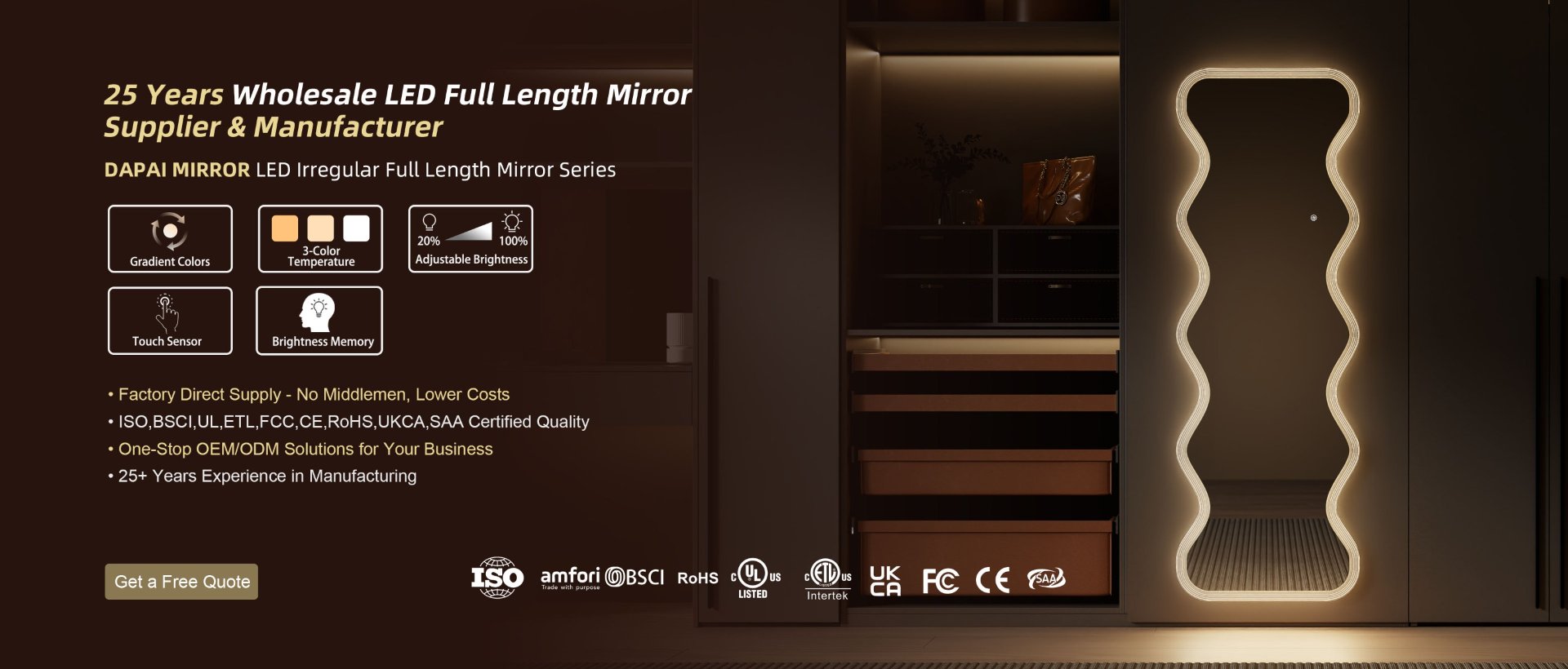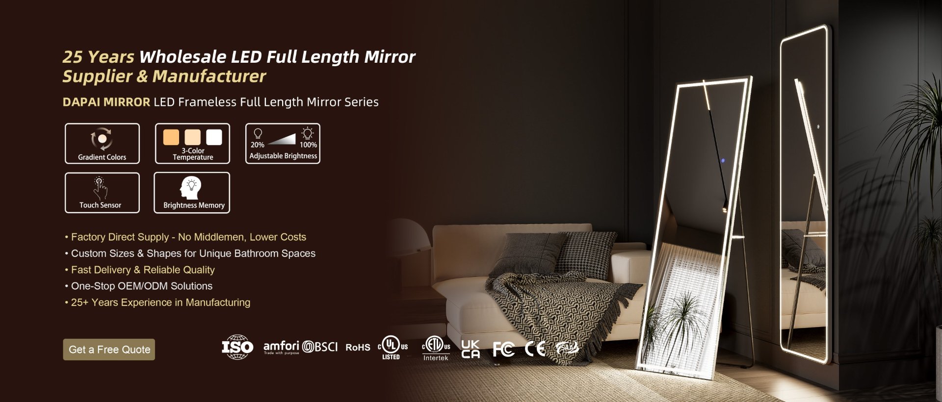 Looking for stylish and high-quality floor and wall mirrors? DAPAI Mirror offers a wide range of full length mirrors that blend seamlessly with modern interiors. Our mirrors are ideal for retail stores, dressing rooms, and living spaces, providing both beauty and durability.